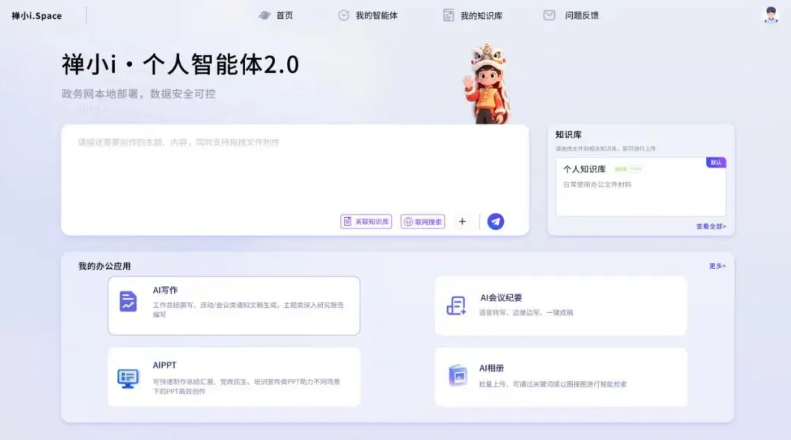 “禅小i·个人智能体2.0”是在政务网环境上部署,无需复杂软件包与外部配置,安装部署和使用的门槛大幅降低。
